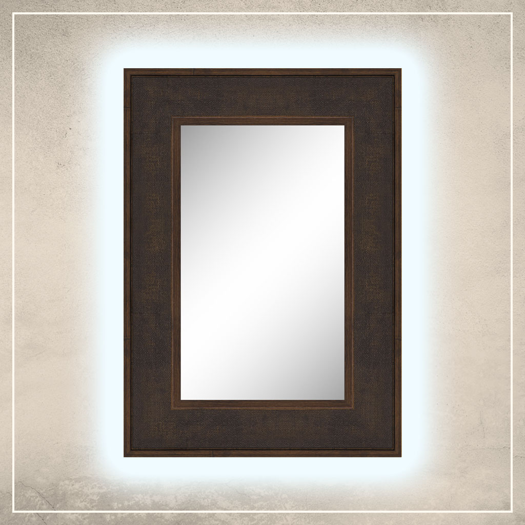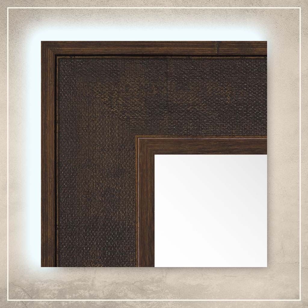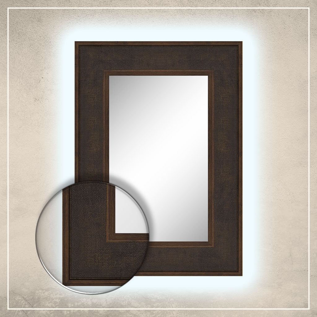 • spoguļa rāmja vidējai daļai ir uzlīmēts audums, kas ir nokrāsots tumši brūnā krāsā
