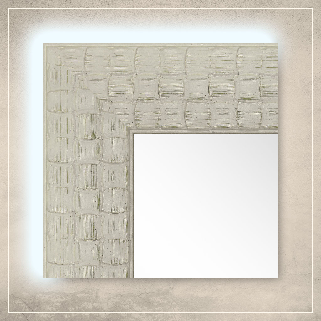 • spoguļa rāmis ir krāsots baltā krāsā