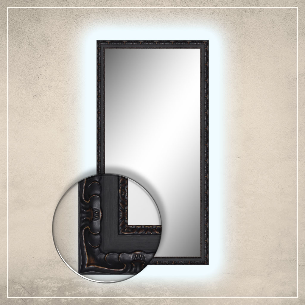 • spoguļa rāmis ir krāsots melnā krāsā