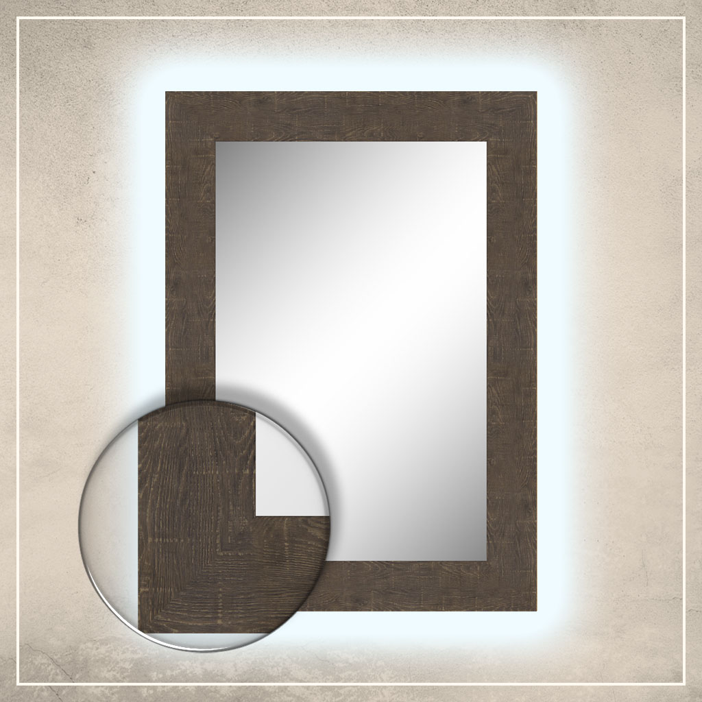 • spoguļa rāmis ir apstrādāts ar brūnu beici