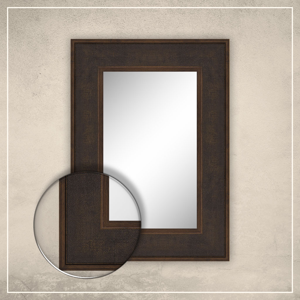 • spoguļa rāmja vidējai daļai ir uzlīmēts audums, kas ir nokrāsots tumši brūnā krāsā