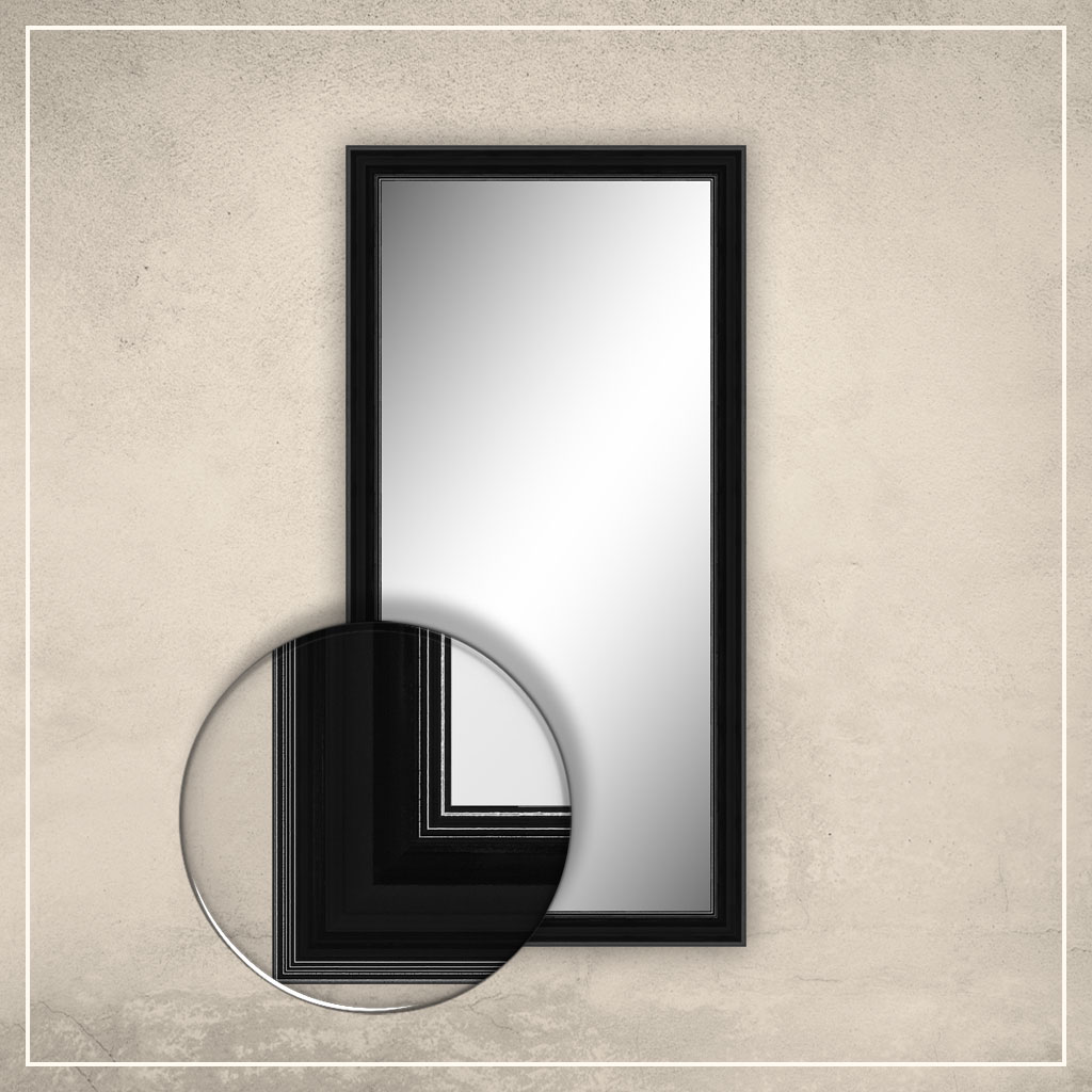 • spoguļa rāmis ir krāsots melnā krāsā (augsta spīduma)
