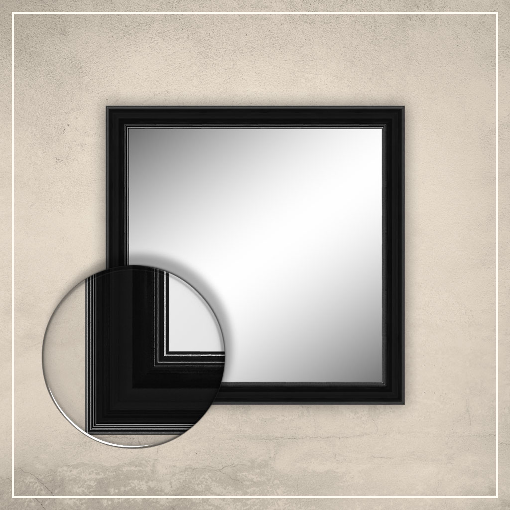 • spoguļa rāmis ir krāsots melnā krāsā (augsta spīduma)