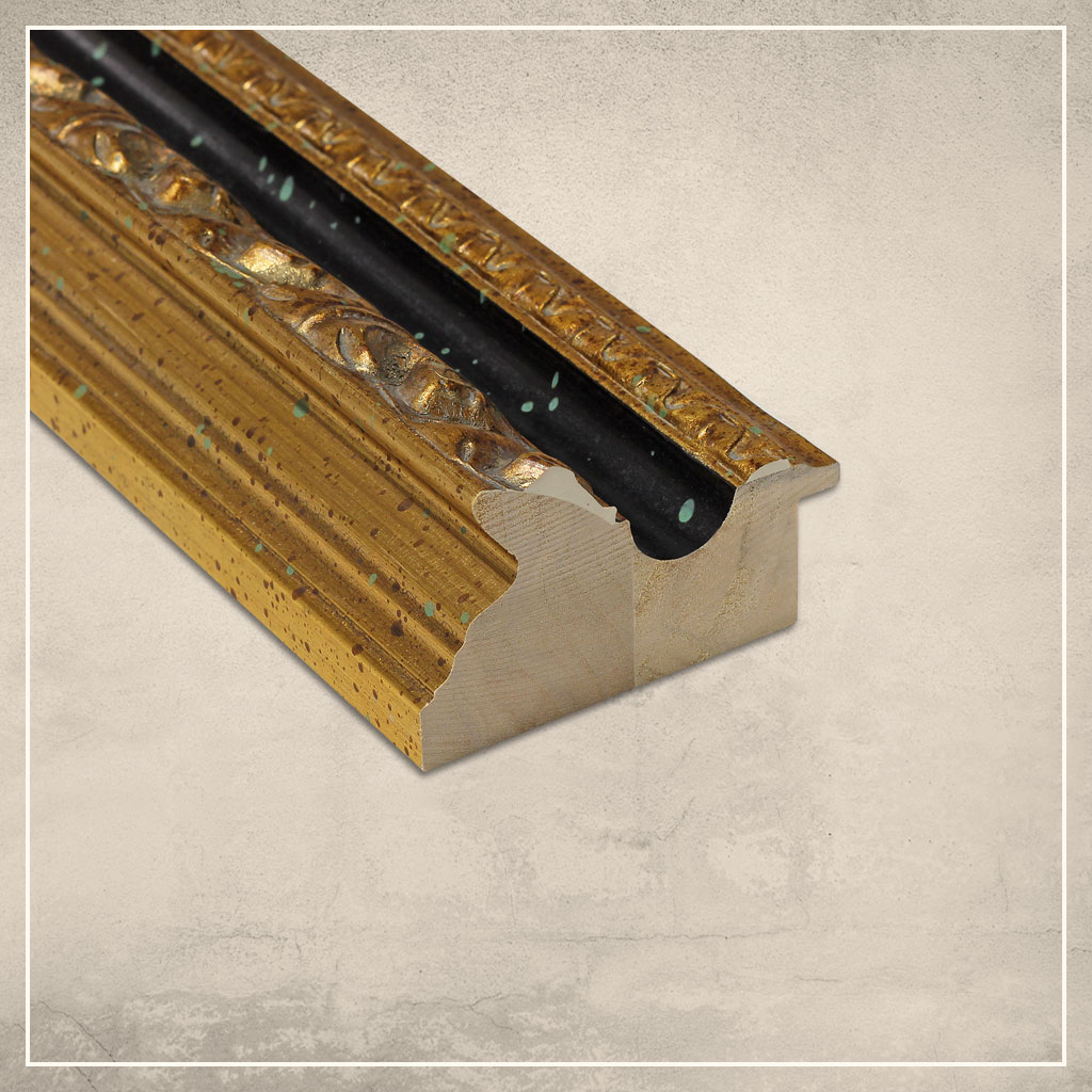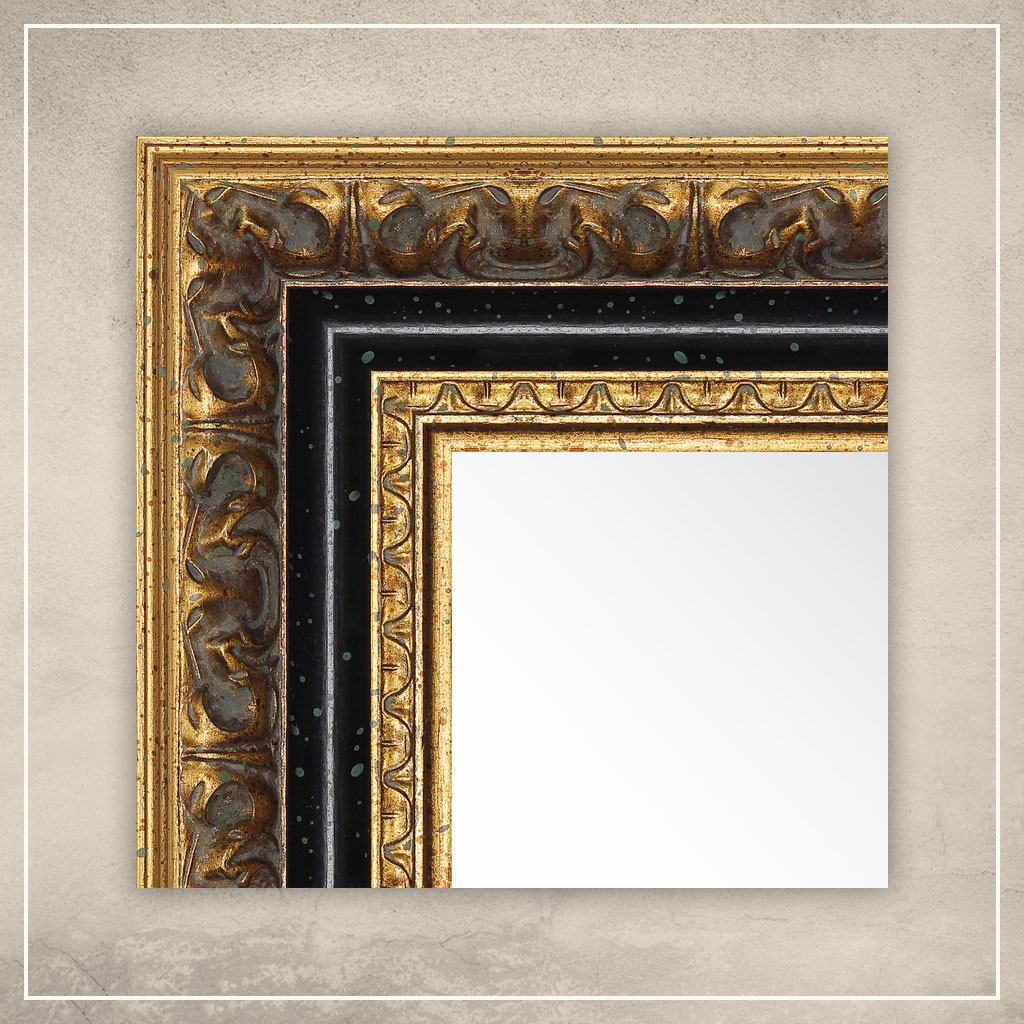 • spoguļa rāmis ir krāsots zeltītā un melnā krāsā